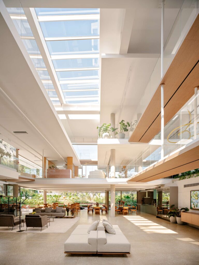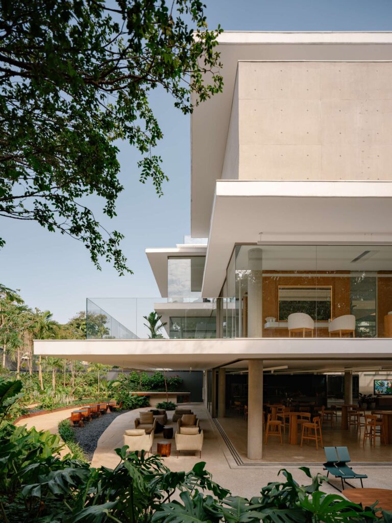 O espaço conceito da marca de móveis reúne arquitetura, design e arte – contemplando obra da artista local Manuela Costa Silva