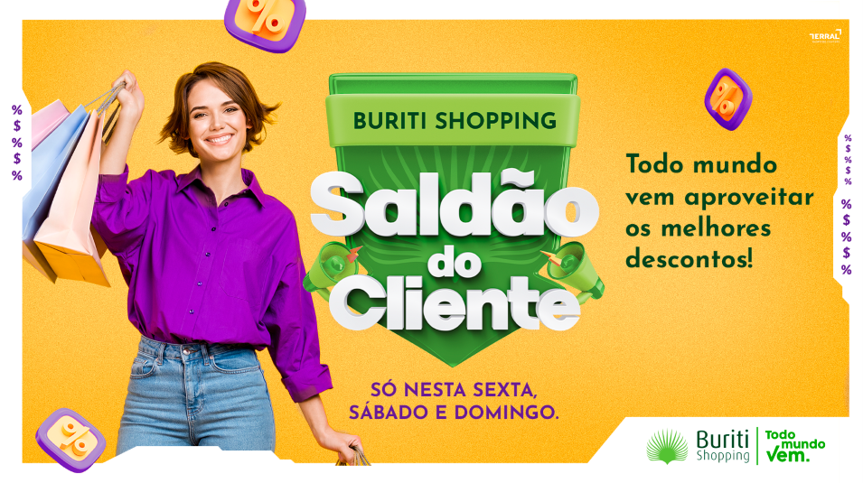 Depois de 366 dias de luta, finalmente chegaram os dias de glória para os clientes do Buriti Shopping. Entre os dias 03 e 05 de janeiro, o centro de compras vai promover o tradicional “Saldão do Cliente”, período pós-festas de final de ano em que diversas lojas oferecem descontos que podem chegar em até 50%. Quem passar pelo shopping poderá ainda fazer as trocas dos presentes de Natal e, de quebra, aproveitar os preços mais baixos em eletrodomésticos, vestuário, calçados, acessórios, maquiagem, beleza e perfumaria; além de vários artigos infantis. Durante os três dias, haverá também condições especiais de pagamento, para ninguém ficar de fora.