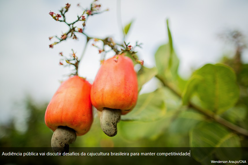 Os desafios para a produção de caju no Brasil serão debatidos em uma audiência pública interativa da Comissão de Agricultura (CRA), marcada para segunda-feira (2), às 9h30. O debate é uma iniciativa dos senadores Eduardo Girão (Novo-CE) e Hamilton Mourão (Republicanos-RS).