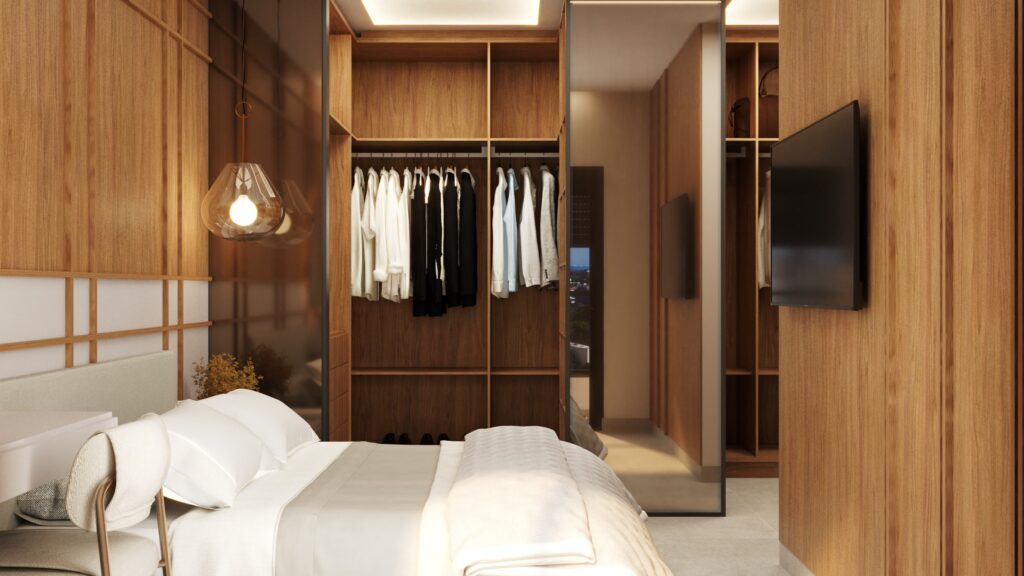 Anderson Aciolli, diretor da Yutá Inc, explica que o conceito do Synergia é que a casa seja um lugar de regeneração, um lugar onde a família tenha mais que um abrigo seguro e confortável. “Com a vida agitada das famílias, os imóveis ganharam a atribuição de restabelecer o equilíbrio interior de seus moradores. Por isso, cada detalhe pensado para minimizar estresses importaram para nós ao desenvolver o projeto”, comenta, ao ressaltar que o closet duplo é uma sugestão de uso do espaço, que é entregue sem divisões.