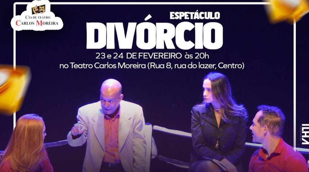 A comédia de costumes Divórcio, escrita por Franz Keppler, com argumento de Otávio Martins, e dirigida por Humberto Pedrancini, integra as ações comemorativas pelos 15 anos do Teatro Carlos Moreira. O espetáculo será encenado nos dias 23 (sexta-feira) e 24 (sábado), às 20 horas. O teatro está localizado na Rua do Lazer (Rua 8), no Centro, em Goiânia. Os ingressos custam R$ 20 (inteira) + 1kg de alimento não perecível a ser doado para famílias em situação de vulnerabilidade social.