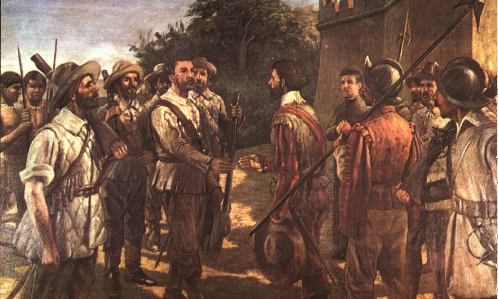 Os bandeirantes foram homens paulistas dos séculos XVI a XVIII que, para obter mão de obra escravizada para suas fazendas de trigo e localizar metais e pedras preciosas, invadiram os sertões, quilombos, territórios indígenas e espanhóis.