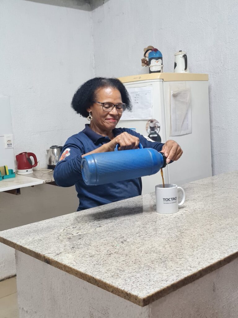 Não negligencie os exames preventivos, nem ignore os primeiros sinais. Esta foi a mensagem que a copeira de 57 anos, Maria Aparecida de Souza Andrade levou para seus colegas de trabalho no canteiro de obras em Goiânia. Ela compartilhou sua história de luta contra o câncer de mama, iniciada em 2020, durante a pandemia durante uma ação de conscientização do Outubro Rosa.