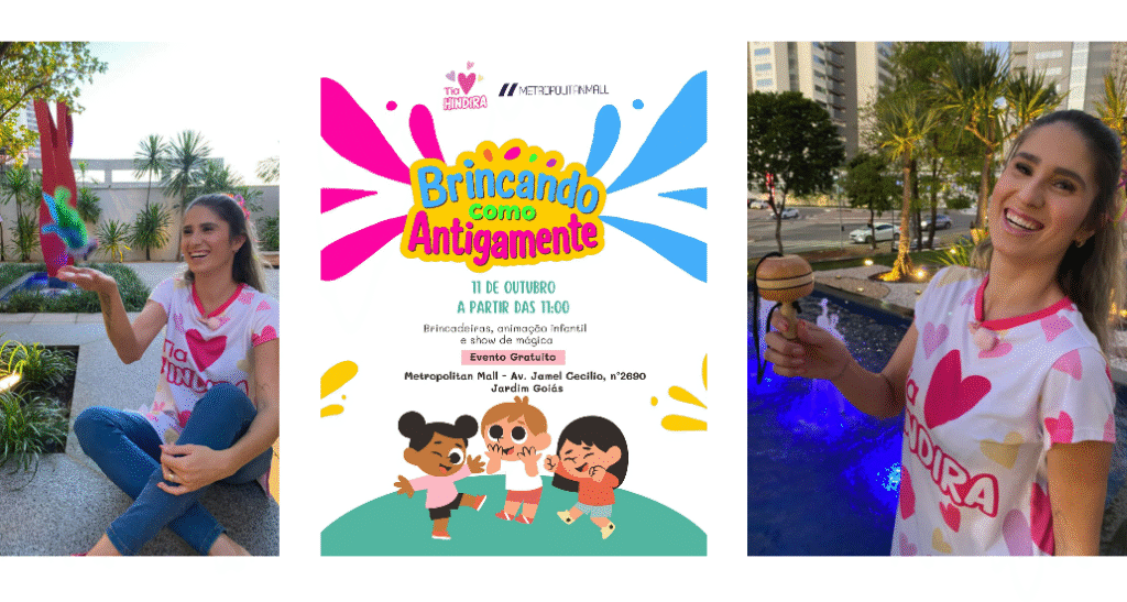 No sábado, 11 de outubro, véspera de Dia das Crianças, o Metropolitan Mall promoverá um evento especial e gratuito para o público infantil e suas famílias. A programação terá início às 11h e contará com animação, oficinas, show de mágica e, principalmente, um incentivo às brincadeiras de antigamente.