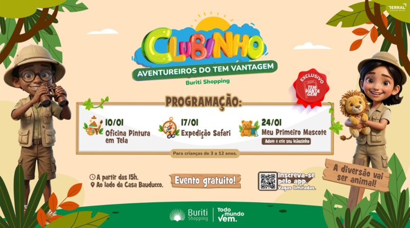 Para completar a programação especial de férias, no próximo sábado, dia 17 de janeiro, o empreendimento promove a Expedição Safari, ação interativa em que as crianças participam, junto com a família, de uma busca por pistas espalhadas pelo shopping, completando um mapa temático e recebendo um brinde ao final. Já no sábado seguinte, 24 de janeiro, acontece a atividade Meu Primeiro Mascote, em que cada criança poderá criar seu próprio leãozinho de pelúcia, estimulando a imaginação, o cuidado e o vínculo afetivo. Essa programação é exclusiva para clientes que fazem parte do clube de benefícios do shopping Tem Vantagem e a inscrição deve ser realizada por meio do aplicativo do empreendimento.