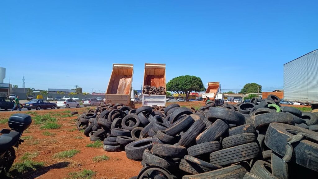 Pneus descartados de forma irregular em canteiros e lotes baldios estão entre os principais focos de proliferação do mosquito da dengue, por acumularem água parada. A iniciativa busca eliminar esses criadouros, reduzir riscos à saúde pública e dar destinação ambientalmente correta a esse tipo de resíduo, atuando de forma preventiva no enfrentamento da dengue.