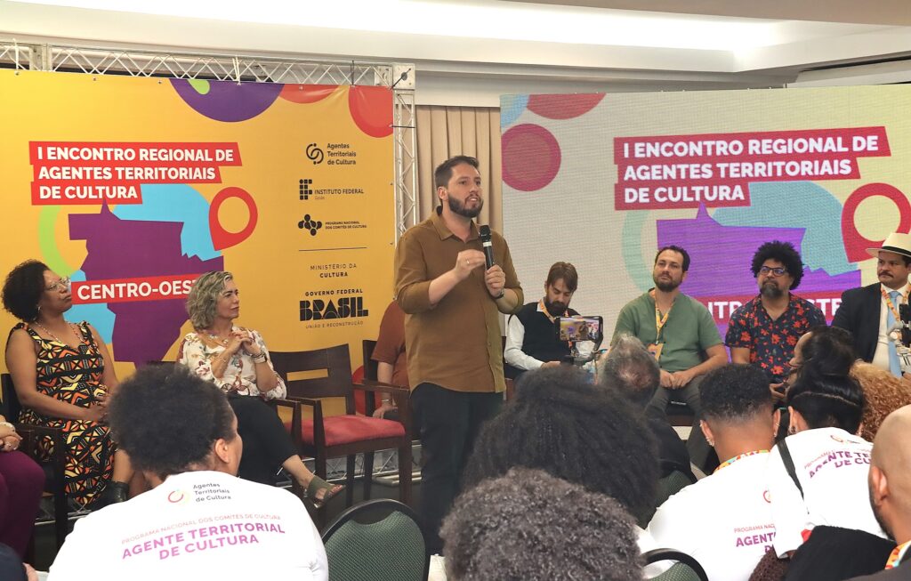 O projeto dos Agentes Territoriais de Cultura começou a ser implementado pelo MinC em 2024, em parceria com Institutos Federais. Durante a abertura do encontro em Goiânia, o secretário-executivo do MinC, Márcio Tavares, afirmou que o evento local é de suma importância para a articulação do programa no Centro-Oeste. “O Brasil é um país com uma vastidão de municípios. São 5.570, e a maioria deles não tem equipamento cultural, não tem um cinema, não tem um teatro, não tem um centro cultural. Quando muito, tem uma biblioteca. Os nossos comitês e os nossos agentes [de cultura] são os nossos braços, pernas, corações, cérebros que atuam em cada uma das regiões do país”, disse o gestor.