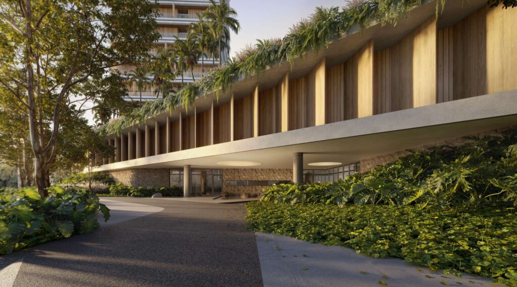 A integração entre o regional e referências globais também se evidencia em outro grande lançamento, a primeira praia de surf do Centro-Oeste, projetada pelo renomado escritório Foster + Partners. O masterplan do complexo reúne hotel, residências de alto padrão e um mall integrado, criando uma experiência urbana inédita para a cidade. Mesmo com a proposta internacional, a valorização da vegetação nativa e conexão com áreas verdes se mantém presente, reforçando o compromisso com o território e com a qualidade de vida.