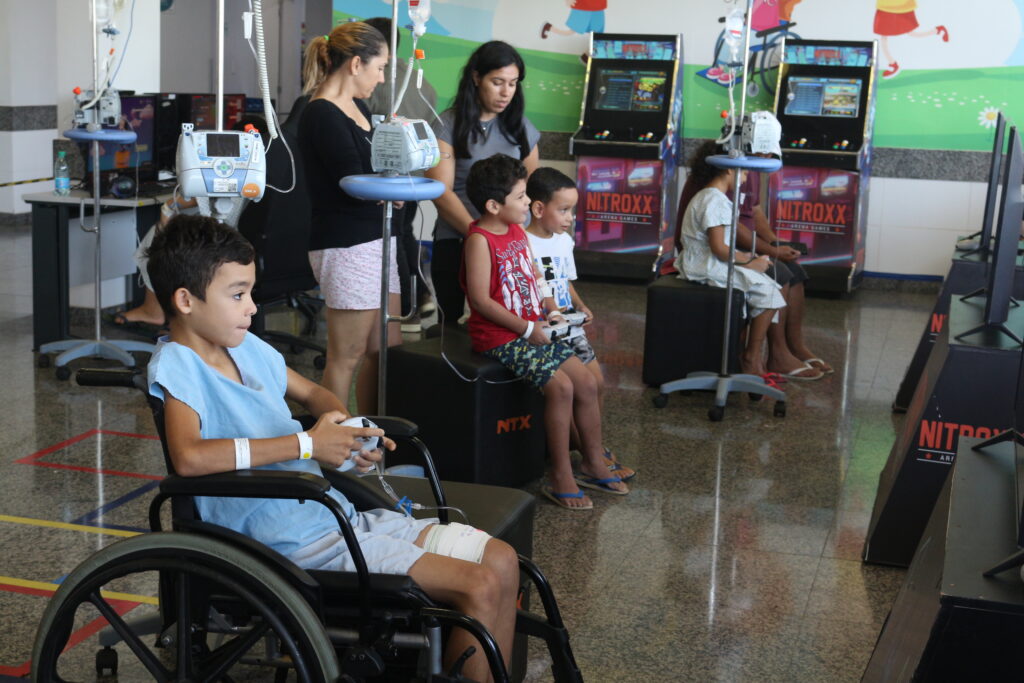 A Game Terapia é uma realização do Setor de Experiência do Paciente e da Comissão de Humanização da unidade, em parceria com a Associação Goiana de eSports (AGES). O evento contou ainda com o apoio de parceiros que ajudaram a criar uma verdadeira imersão no mundo gamer: a Nitroxx Games levou consoles de última geração, PCs gamers, cockpit de simulação de corrida e fliperama retrô; a Kombat Zone produziu brindes, camisetas e livros de colorir temáticos; o Droid Builders Club BR apresentou robôs inspirados em personagens icônicos como Wall-E e Pit Droid; e o Goiás Esporte Clube marcou presença com seu mascote oficial, que distribuiu picolés feitos com frutas típicas do Cerrado, unindo sabor, tradição e solidariedade.