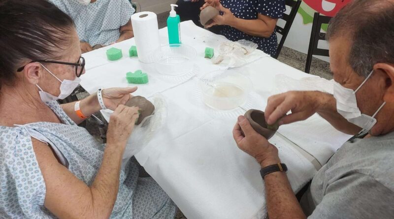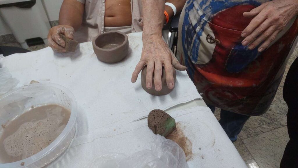A oficina de modelagem em argila despertou emoções e reflexões profundas. Durante a atividade, a artista Rosy Cardoso agradeceu ao HMAP pela oportunidade de estar presente e explicou que o processo criativo no ambiente hospitalar é um caminho de mão dupla. “A gente pensa que vai ensinar, mas nós é quem aprendemos e temos a oportunidade de dividir o pouco que sabemos”. O material utilizado pelos participantes foi preparado previamente em laboratório, garantindo higiene e segurança para os pacientes.