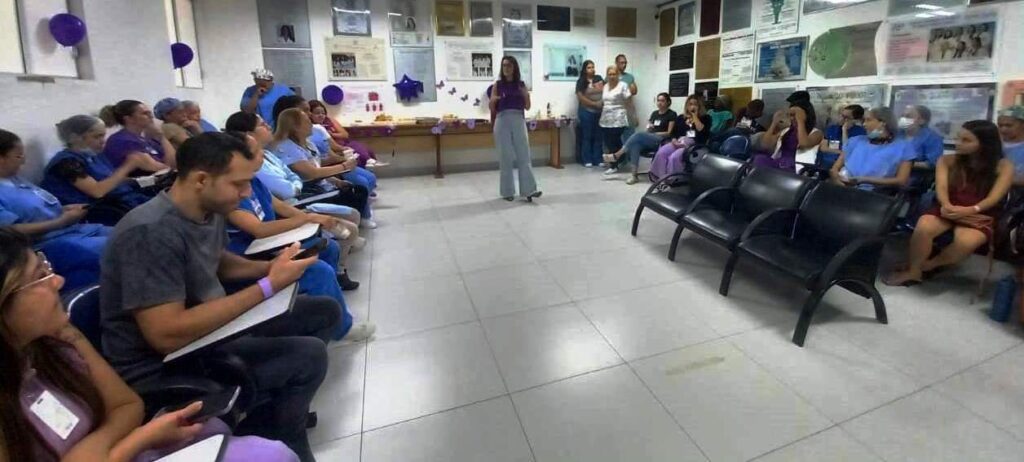 O evento ocorreu no auditório da unidade hospitalar, que foi especialmente decorado com balões roxos, a cor símbolo da causa da prematuridade. A programação contou com uma palestra on-line intitulada “Humanização da Jornada do Bebê”, com a enfermeira Adriana Paula Antiga, que proporcionou uma reflexão profunda sobre as necessidades específicas e a abordagem humanizada no cuidado com bebês prematuros.
