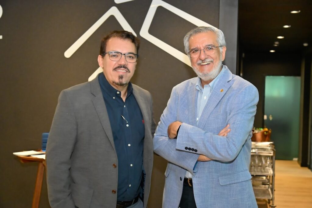 Um dos vencedores do IV Prêmio Nacional de Poesia, Claudiney Costa (esquerda), e o coordenador do Instituto Cultural Sicoob UniCentro Br, Fernando Cupertino (direita), na solenidade de entrega das premiações da edição de 2024 do concurso. Crédito: Silvio Simões