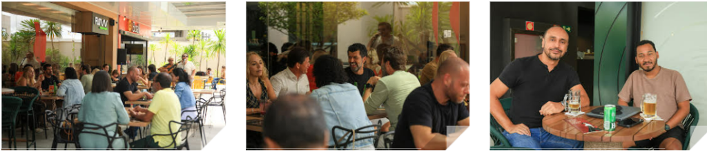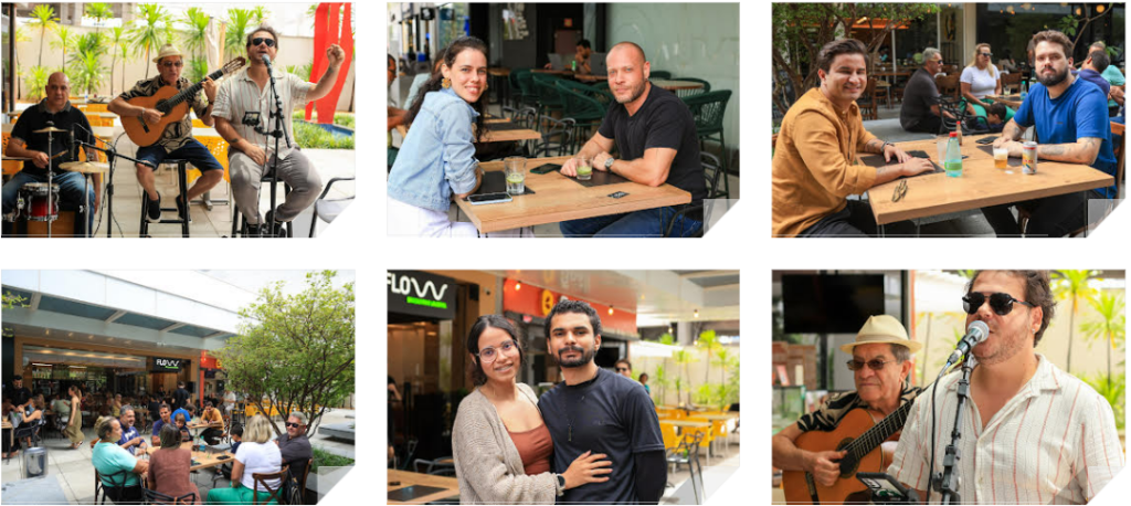 O evento “Esticadinha de Carnaval” trouxe ao palco o trio formado por João Garoto, Danilo Duarte e Marcos Batera, animando o público presente. No campo gastronômico, o destaque foi a feijoada assinada pela Flow, complementando o cardápio local que abrange desde a culinária saudável até hambúrgueres, pratos árabes e orientais.