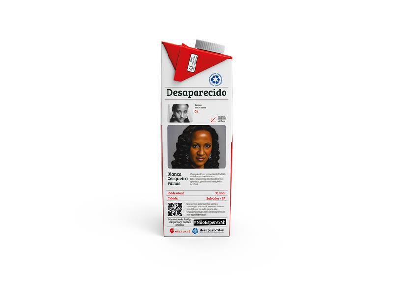 Embalagens de leite das marcas Piracanjuba e LeitBom, que já exibem imagens atualizadas de pessoas desaparecidas a partir do uso de inteligência artificial, passam a divulgar alerta quanto à urgência no registro dessas ocorrências