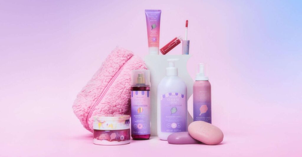 Fragrâncias nostálgicas que evocam memórias do passado é uma tendência que atravessa gerações, expandindo para além da Geração Z, pois todos encontram conforto em aromas familiares em um mundo em rápida transformação – é o que traz o Relatório de Tendências de Beleza e Cuidados Pessoais para 2025 da Mintel. Exatamente nesse sentido, Cuide-se Bem Doces Delírios Algodão-Doce, novidade do Boticário, traz linha completa de cuidados corporais com fragrância inspirada no algodão-doce. A nostalgia com referência no doce da infância vai além do olfativo, aparecendo também em novas texturas indulgentes para uma rotina de autocuidado mais divertida.