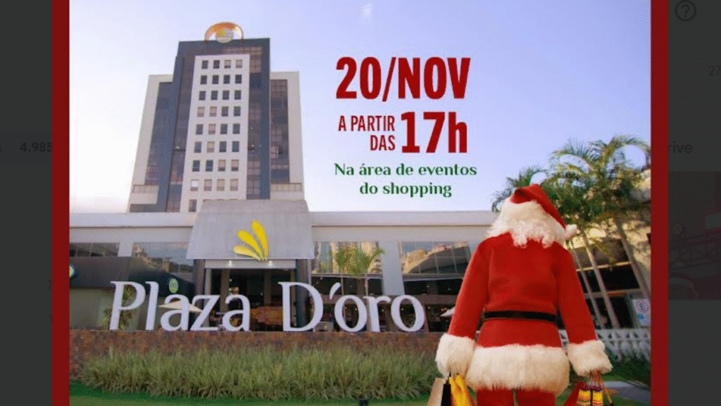 O clima natalino já começa a tomar conta do Plaza D’Oro Shopping, que recebe o Papai Noel no próximo dia 20 de novembro, feriado da Consciência Negra, a partir das 17h. A chegada do bom velhinho será marcada por um momento especial, com atividades lúdicas e ambientação temática que prometem encantar crianças e adultos.