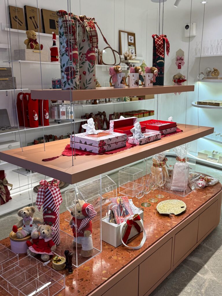 Entre os destaques estão kits natalinos exclusivos, montados em caixas especiais com produtos como cartões personalizados, velas perfumadas, lacres de cera, objetos decorativos – como porta-sabonetes de cerâmica com personagens clássicos da data – e outros itens de preferência do cliente. A loja também oferece itens criativos para compor a mesa da ceia, reforçando a ideia de que a beleza do Natal está nos encontros e nos pequenos gestos.