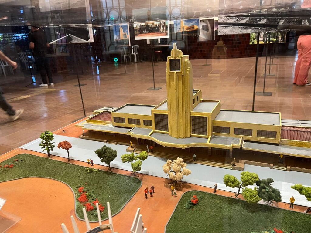 A exposição “Trilhos da Memória” apresenta uma coleção de quadros que retratam diferentes momentos da Estação Ferroviária, desde sua construção até seu papel atual.