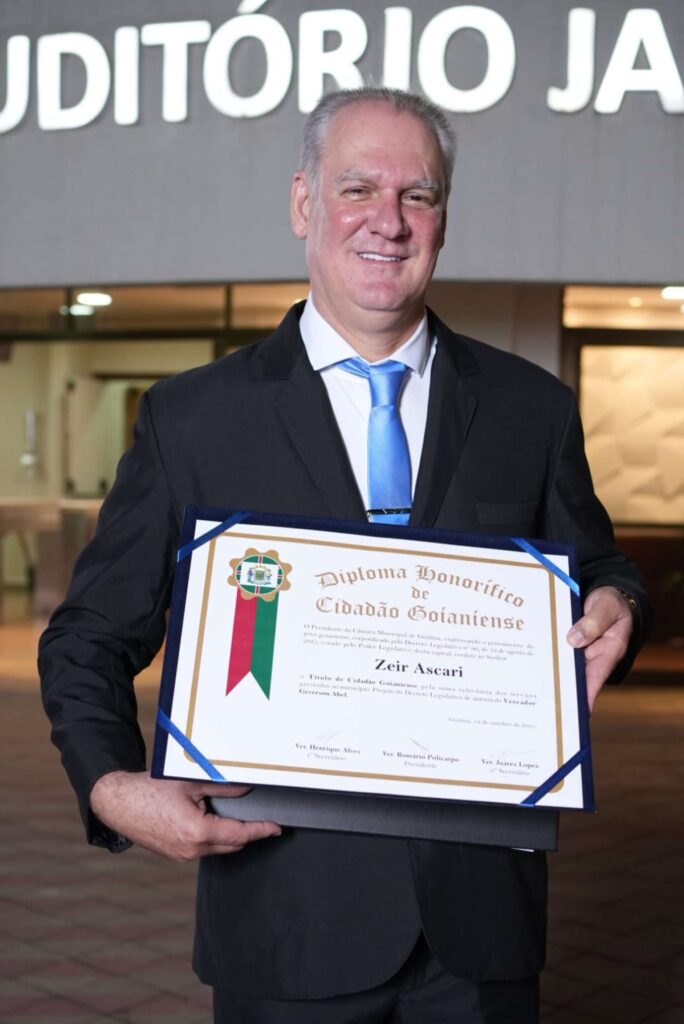 A dedicação ao cooperativismo e o exercício da liderança pautaram Sessão Solene na Câmara de Vereadores de Goiânia, na última terça-feira (14), em concessão do Título de Cidadão Goianiense ao presidente da Sicredi Cerrado GO, Zeir Ascari.
