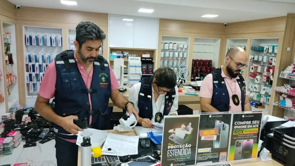 Nesta quarta-feira (05/06), equipes de fiscalização do Procon Goiás estiveram em operação em duas lojas de celulares, no Setor Oeste, em Goiânia. Os agentes foram aos locais após denúncia para averiguar a venda de produtos da marca Apple supostamente falsificados e/ou contrabandeados. A ação contou com a participação da Delegacia Estadual de Repressão a Crimes Contra o Consumidor (Decon).
