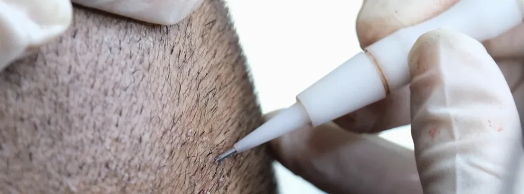 O procedimento é realizado com anestesia local e, na maioria dos casos, o paciente recebe alta no mesmo dia. A recuperação tende a ser mais rápida, com menor desconforto pós-operatório e ausência de cicatriz linear, o que possibilita o uso de cabelos curtos sem marcas aparentes.