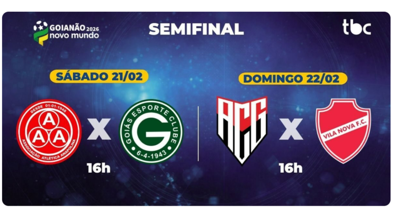 A edição 2026 do Campeonato Goiano de Profissionais da 1ª Divisão (Goianão) está entrando na fase decisiva. Neste fim de semana, os torcedores podem acompanhar os jogos de ida da semifinal do torneio pela TV Brasil Central. Os times semifinalistas são: Anapolina, Goiás, Atlético Goianiense e Vila Nova. Um destes quatro será o campeão da temporada.