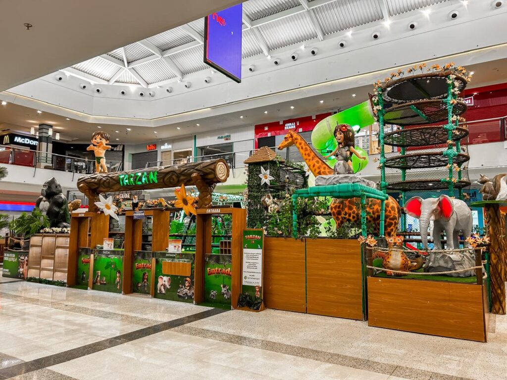 As aventuras da criança selvagem mais querida dos filmes infantis acabam de chegar no Buriti Shopping. Tarzan, acompanhado de seus amigos, traz toda a savana africana para a praça de eventos e é a nova atração infantil do empreendimento, que ficará instalado até o mês de maio. Com escorregadores tubulares, cama elástica, pista de obstáculos, escalada elástica e piscina de bolinhas, o público infantil vai poder usufruir de uma experiência única e divertida, encarando desafios como se estivessem no meio da selva.